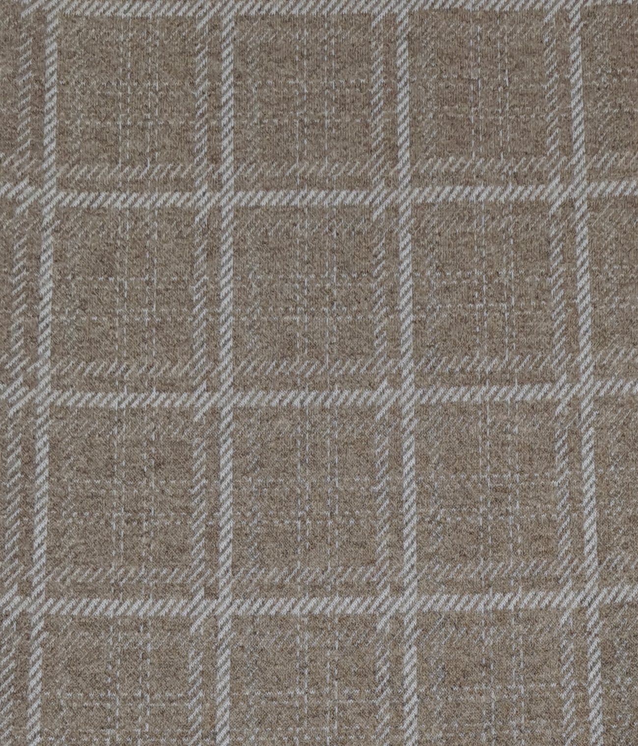 Žakardinio dvigubo mezgimo, švelnus, mielas prie kūno trikotažas. Langeliai apie 5×6 cm dydžio.  Vidutiniškai standus. Tad tiks ir formos reikalaujantiems drabužiams: sarafanams, švarkeliams, suknelėms, kelnėms. Labai tiks ofisinio stiliaus draužiams.