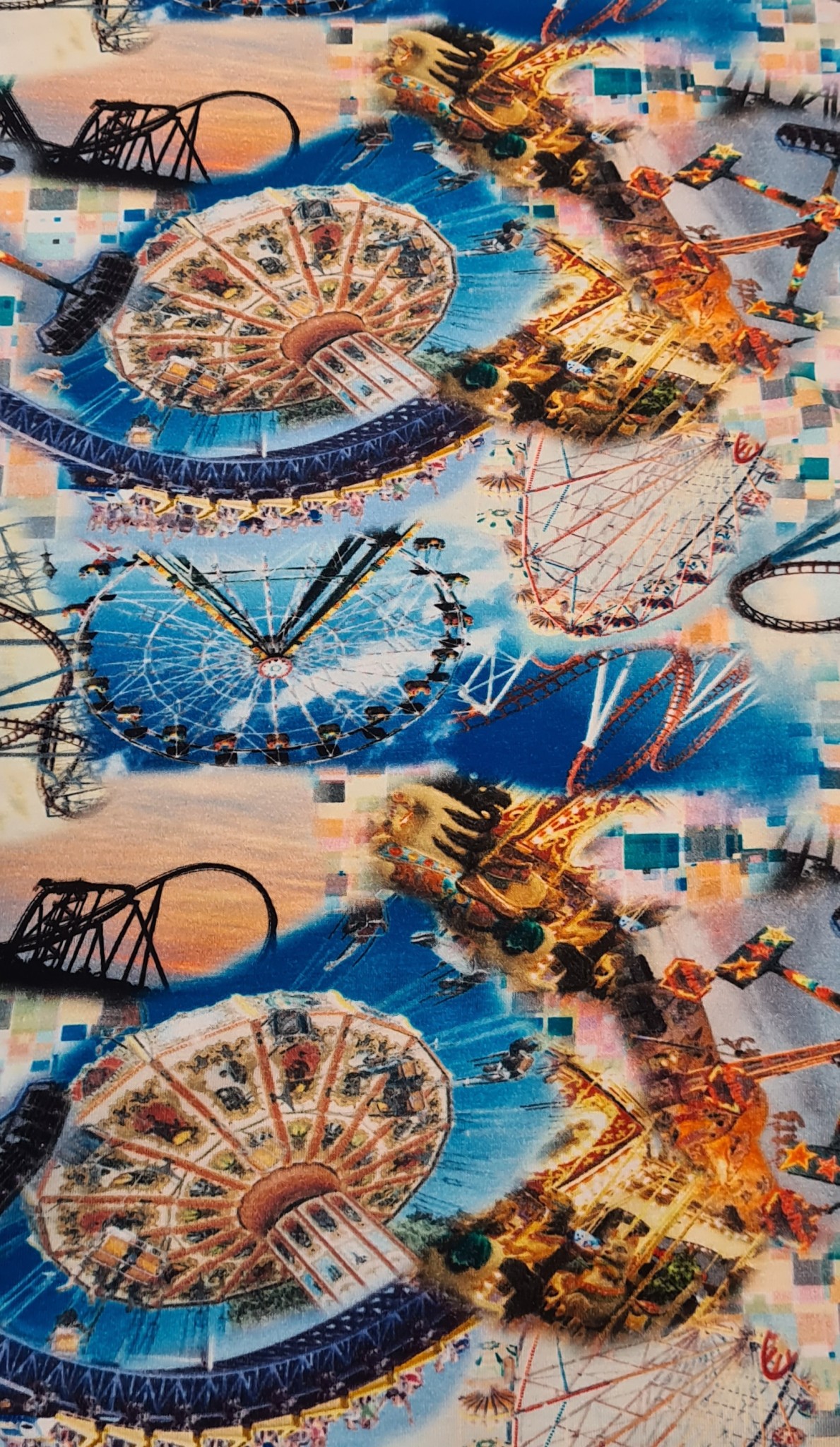 Plonas medvilnės trikotažas su smagiausiais atrakcionais pasaulyje 🙂 skaitmeninė spauda. Individualus dizainas. Medžiaga yra puikios kokybės, tobulai skalbias ir nešiojas. Tiesiog norim jau naujų medžiagų savo lentynose ir senoms pats laikas rasti naujus namus 🙂