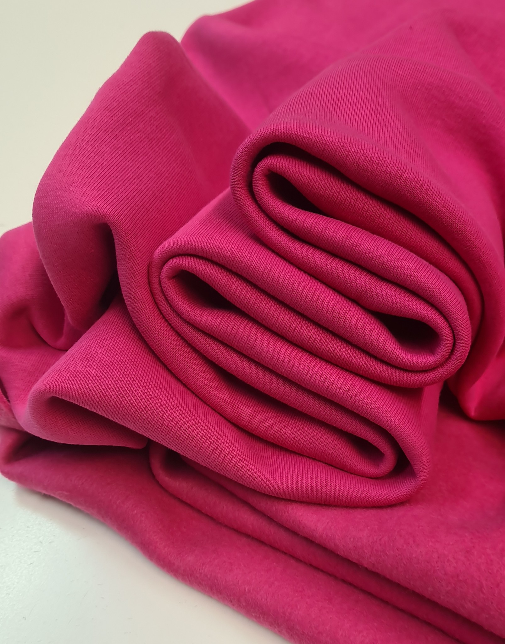 Vidutinio storumo trisiūlis kilpinis trikotažas su pūkeliu. Medžiaga yra labai minkšta ir miela prie kūno.