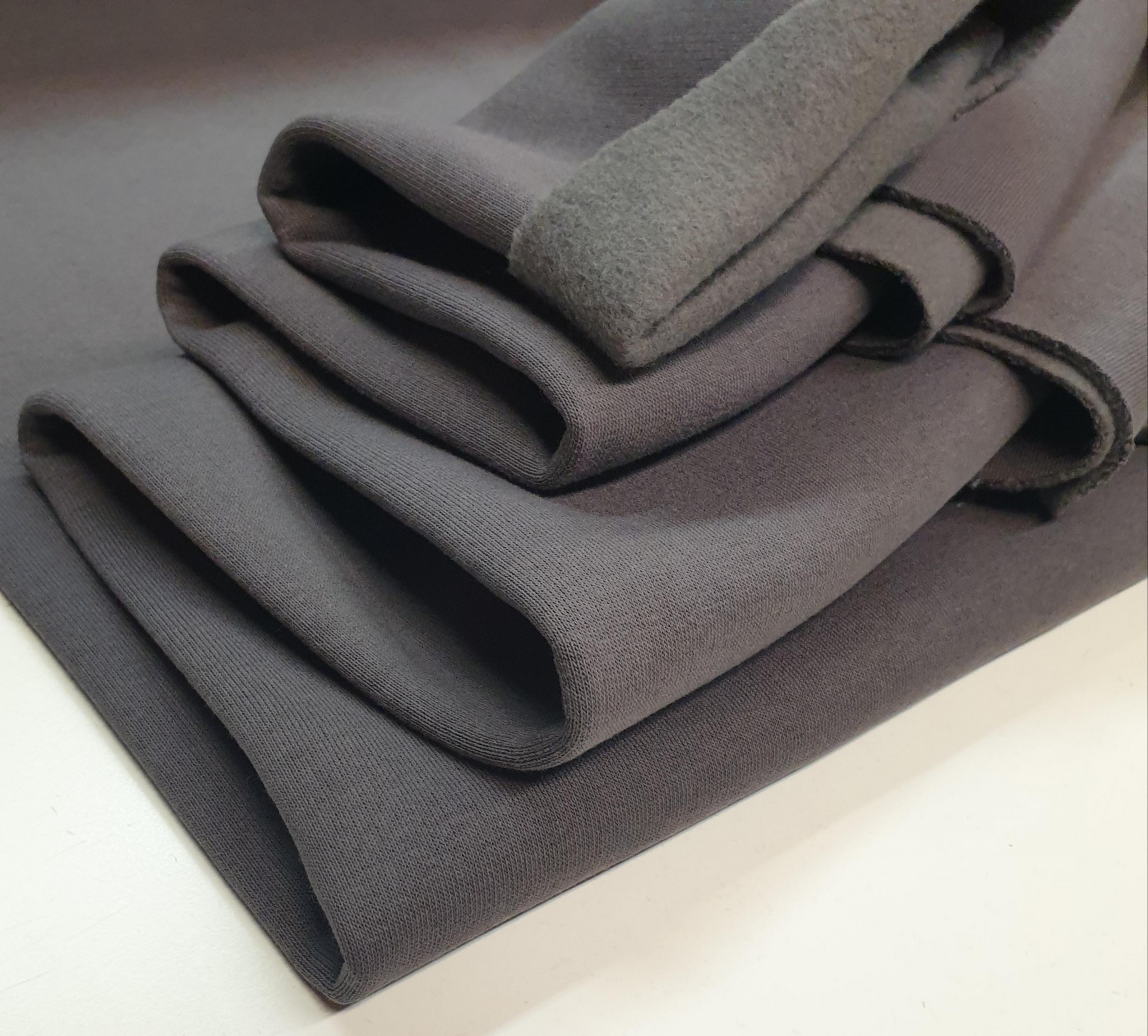Vidutinio storumo trisiūlis kilpinis trikotažas su pūkeliu. Medžiaga yra labai minkšta ir miela prie kūno.