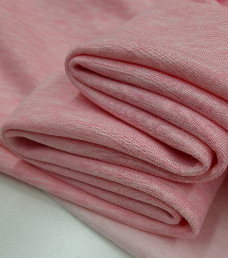 Vidutinio storumo trisiūlis trikotažas su pūku. Maišyti keli rožinai tonai. Medžiaga be galo minkšta. Pagal storumą ir tankumą jau nueinančiai žiemai ir pavasariui tinka. Nors ir neturi elastano, bet medžiaga yra tampri!