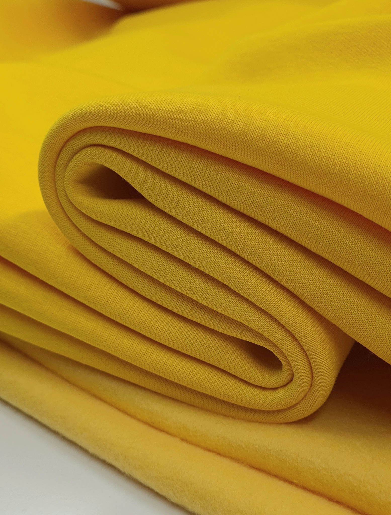 Vidutinio storumo trisiūlis kilpinis trikotažas su pūkeliu. Medžiaga yra labai minkšta ir miela prie kūno.