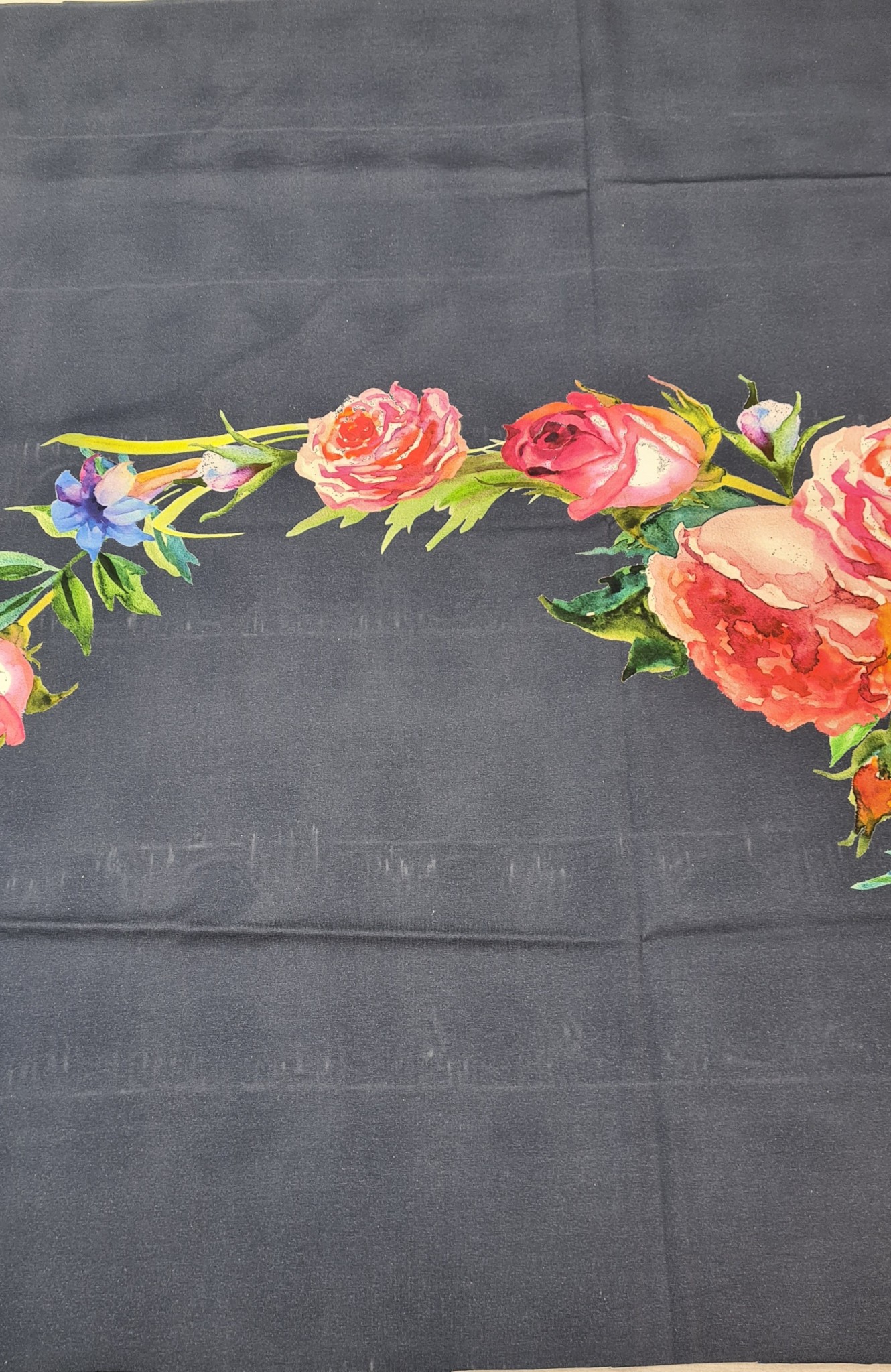 Plonas medvilnės trikotažas. Neskystas. Nepersimato. Pats raštas taip išdėliotas, kad realiai tik fantazijos reikalas, kaip ir kur tas gėles išdėliot. Tiks tamprėms, palaidinėms, suknutėms, kepurėms, movoms.