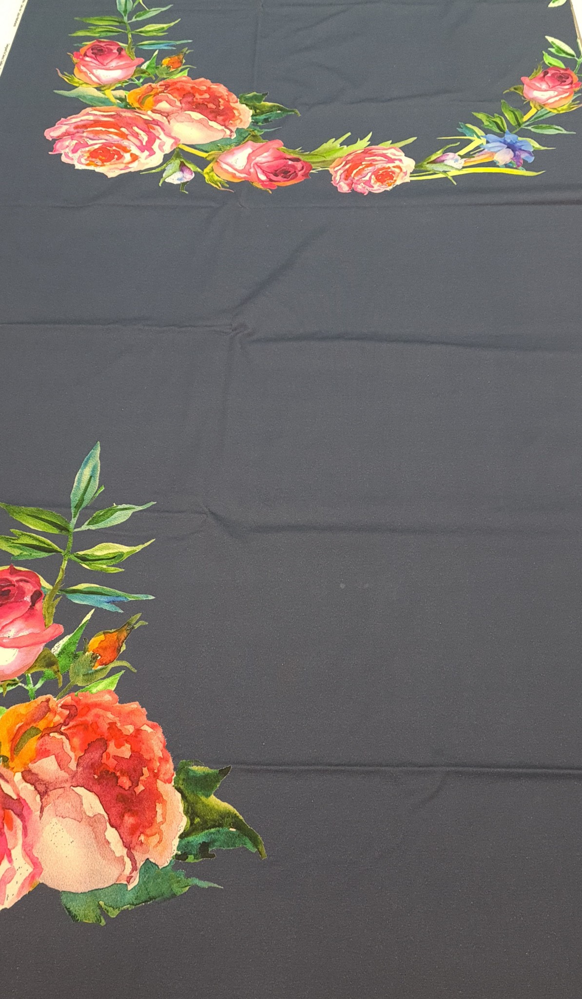 Plonas medvilnės trikotažas. Neskystas. Nepersimato. Pats raštas taip išdėliotas, kad realiai tik fantazijos reikalas, kaip ir kur tas gėles išdėliot. Tiks tamprėms, palaidinėms, suknutėms, kepurėms, movoms.