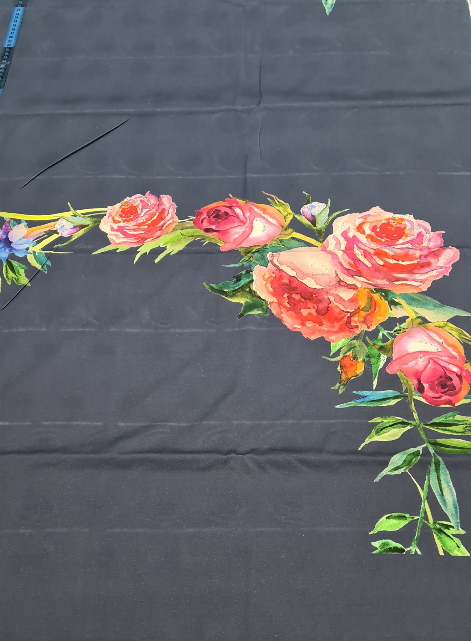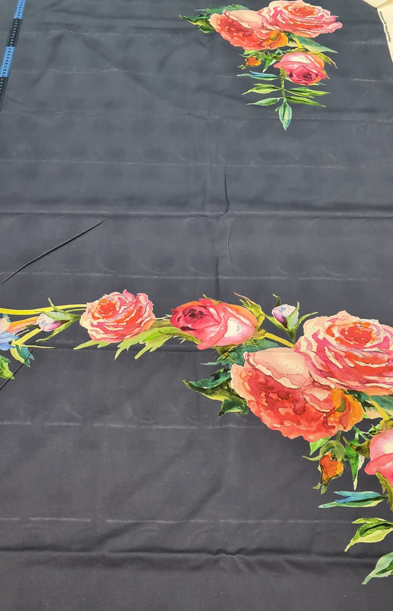 Plonas medvilnės trikotažas. Neskystas. Nepersimato. Pats raštas taip išdėliotas, kad realiai tik fantazijos reikalas, kaip ir kur tas gėles išdėliot. Tiks tamprėms, palaidinėms, suknutėms, kepurėms, movoms.