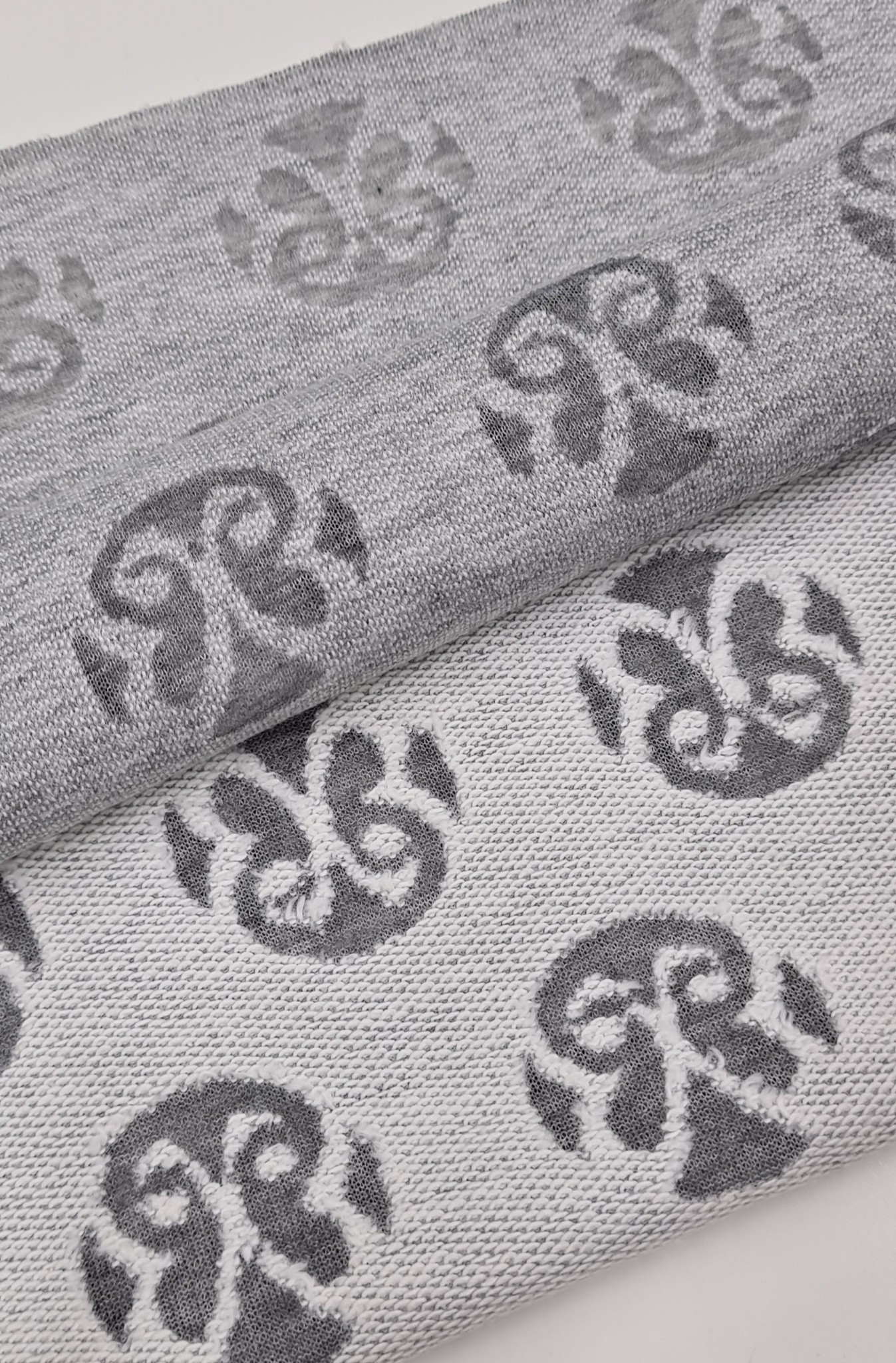 Plonas kilpinis trikotažas su šešėliniuose burbuluose esančiais drugeliais, o gal pelėdomis? Visa medžiaga yra kilpinis, o patys burbulai yra plonas perregimas trikotažas/džersis. Todėl pvz. bliuzonas ar suknelė atrodys kaip su šešėliuose žaidžiančiais drugeliais/pelėdomis. O ir blogoji medžiagos pusė yra labai graži, todėl galima žaisti su abejomis pusėmis.