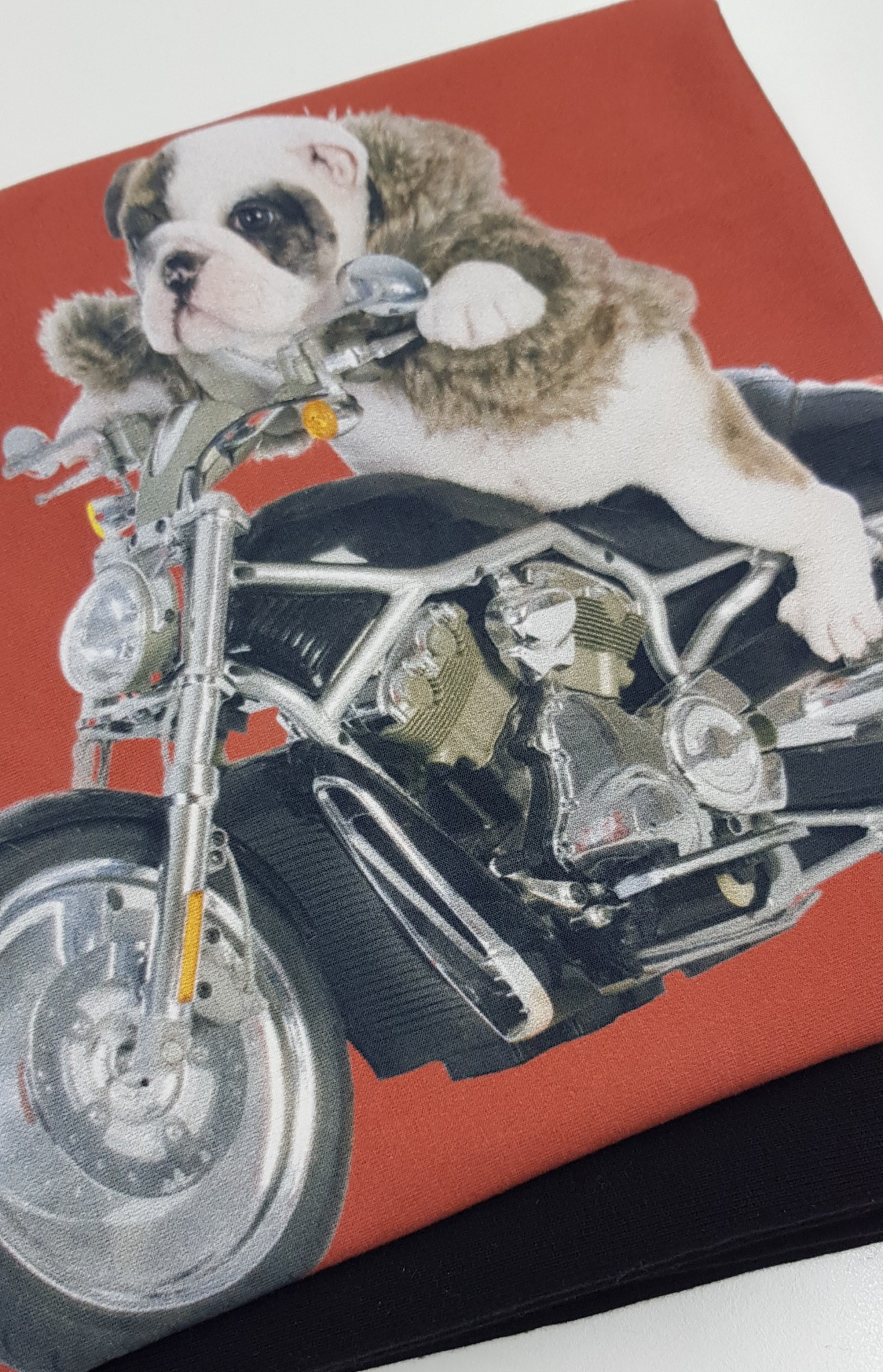 PIRKDAMI 1M, PERKATE 1,6M M LIKUTĮ UŽ 3€. Šiame gabale yra 3 baikeriai šuniukai, vienas per vidurį, kiti prie kraštų. LIKUČIO PLOTIS APIE 60 CM, ILGIS 160 CM. Kaip siūti? Galima vidurinį šuniuką naudoti prr vidurį, šoninius ant rankovių, nugarai užteks irgi medžiagos. Galima derinti juodą medžiagą ir pasiūti ir msrškinėlius, ir kepurę, movą. Labai daug galimybių su šiuo likučiu.